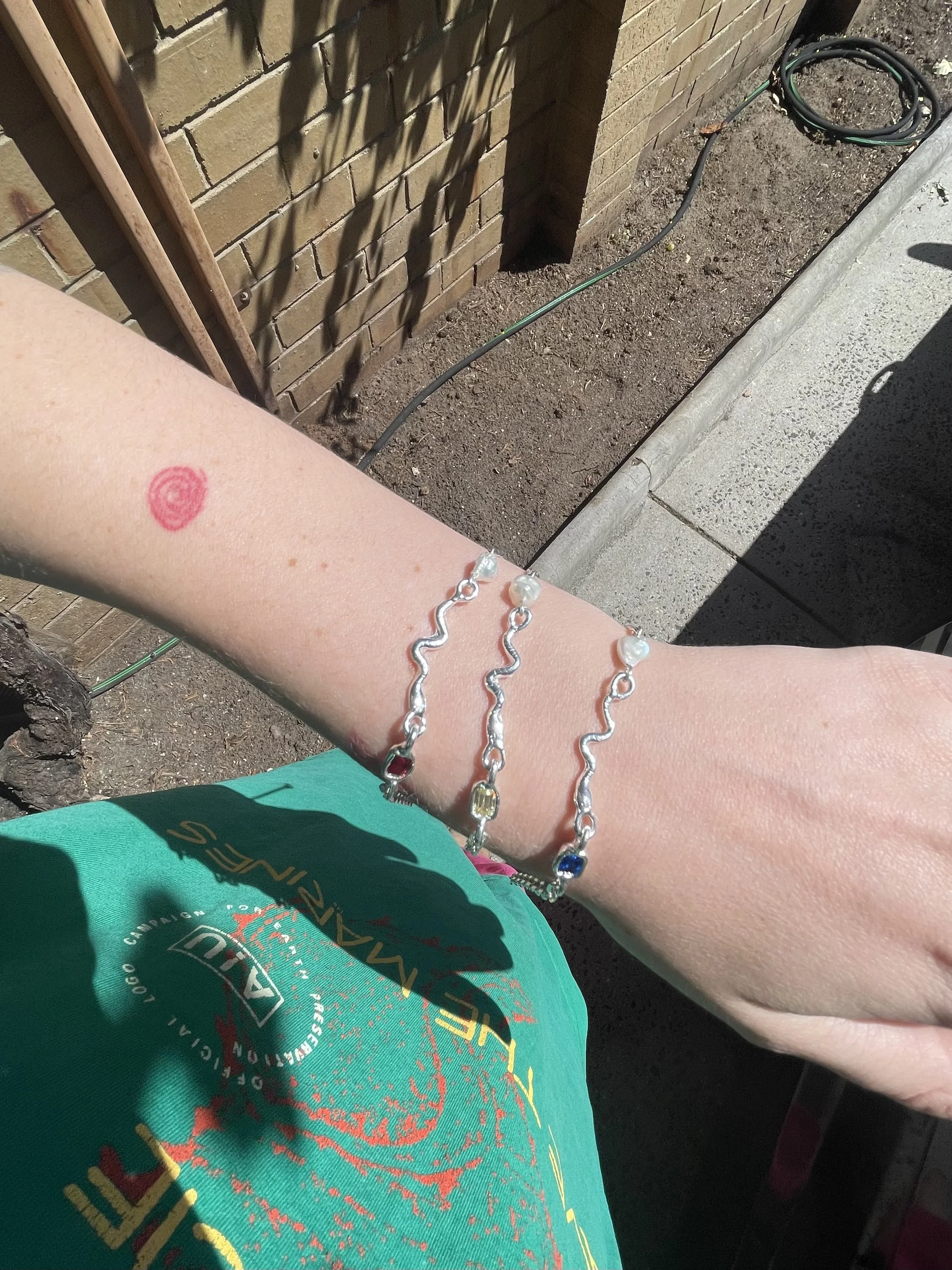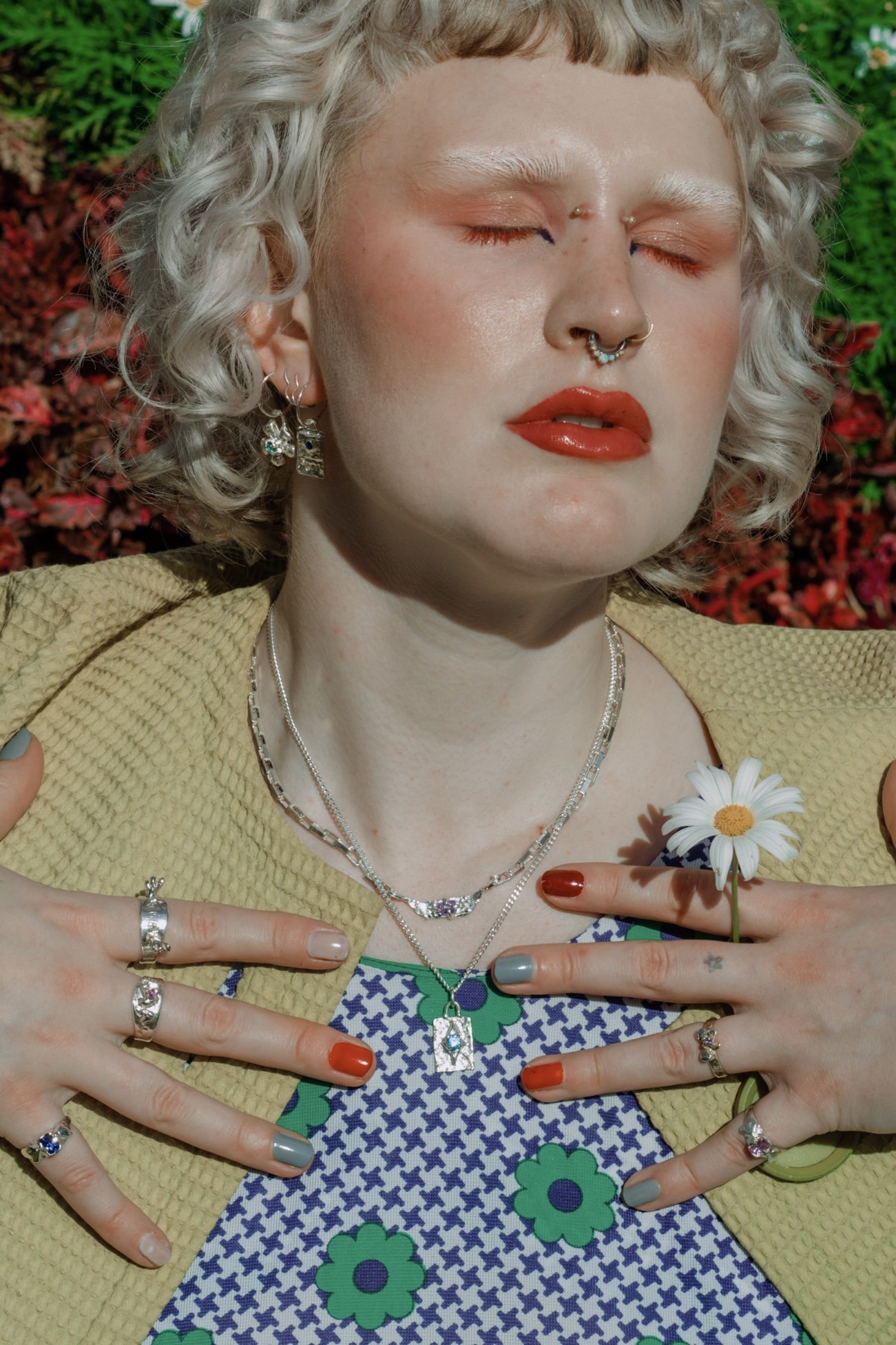 Handmade with sterling silver featuring baby pink and light blue lab-grown gem stones.