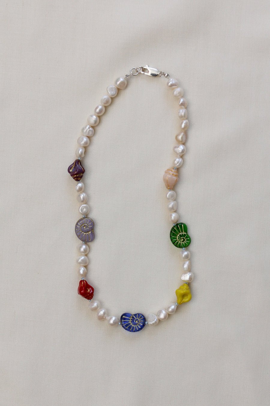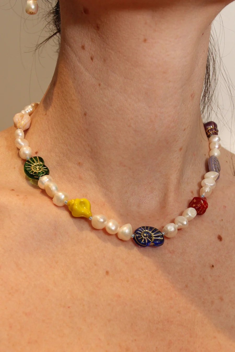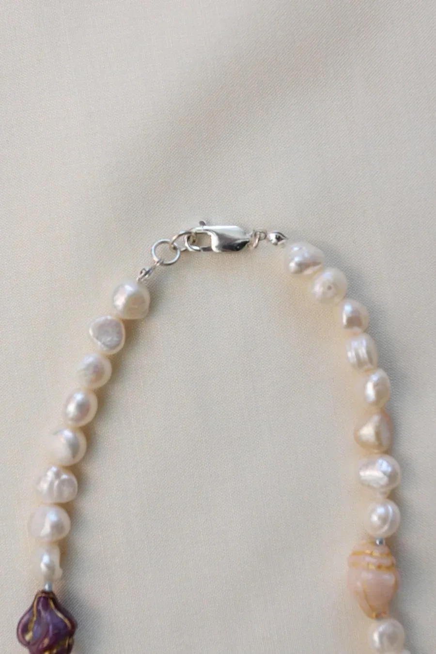 Necklace made from yellow jade stone beads, featuring a silver coated baroque pearl (shape may vary), finished with a 925 sterling silver parrot clasp.